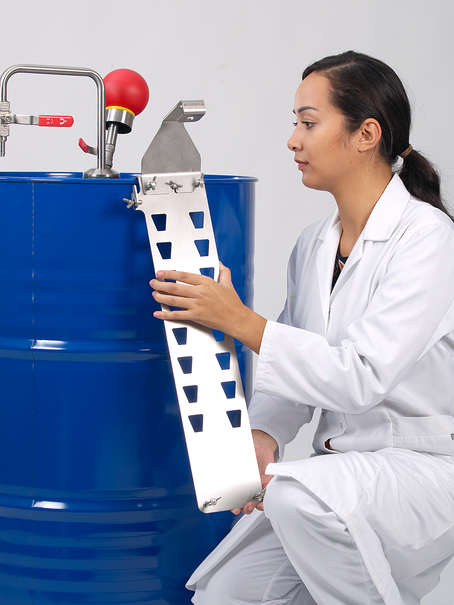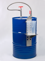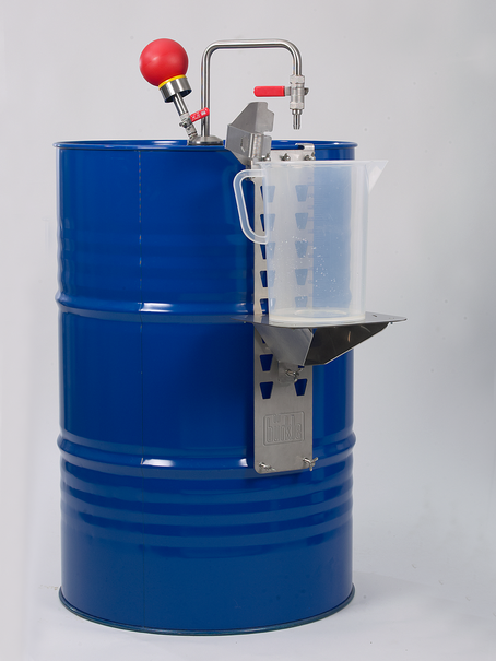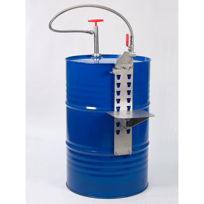 The drum holder is a practical accessory for transferring liquids from drums to smaller containers.