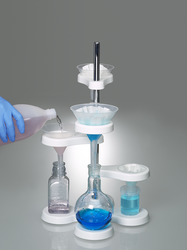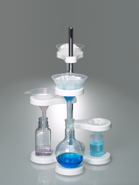 The laboratory stand can be flexibly adapted with corresponding accessories, for example with adjustment funnel holders or a holder for Imhoff funnels. The funnel stand can also be converted into a pipette stand.
