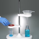 The laboratory stand can be flexibly adapted with corresponding accessories, for example with adjustment funnel holders or a holder for Imhoff funnels. The funnel stand can also be converted into a pipette stand.