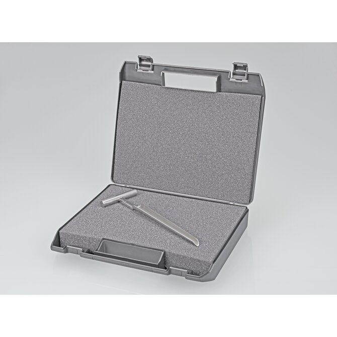 The handy transport case is a plastic case with a foam insert. It features a sturdy carrying handle, snap closures, and internal pick-and-pluck foam. Thanks to its hard outer shell, sensitive equipment is protected from shocks during shipping or when carried in the field.