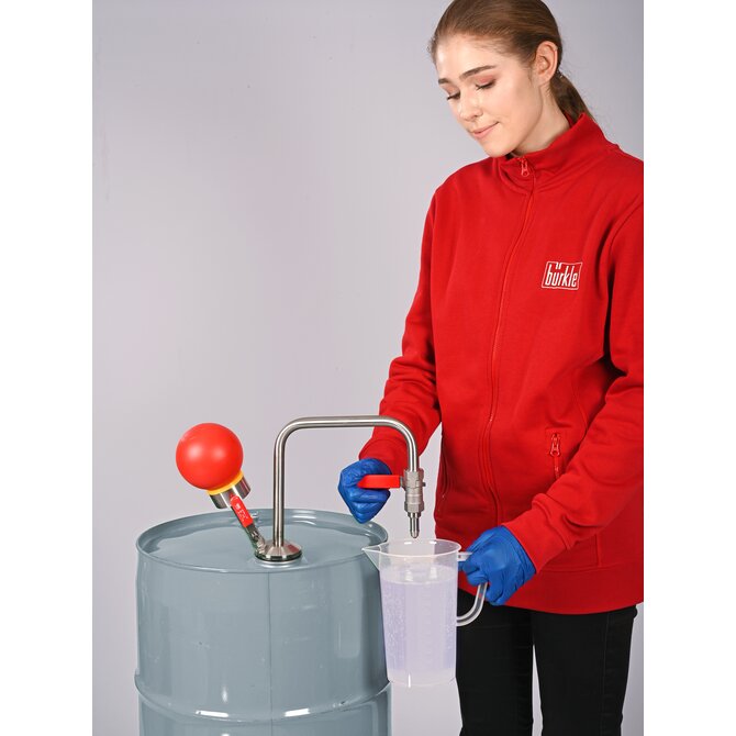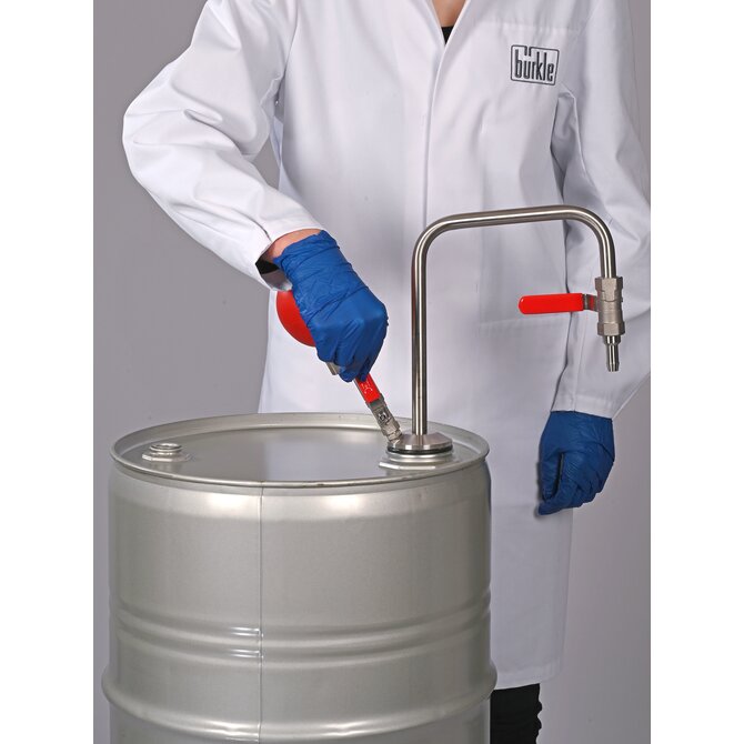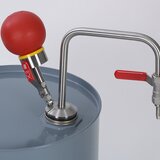 Barrel pump for solvents with discharge hose and stopcock made of stainless steel/PTFE.