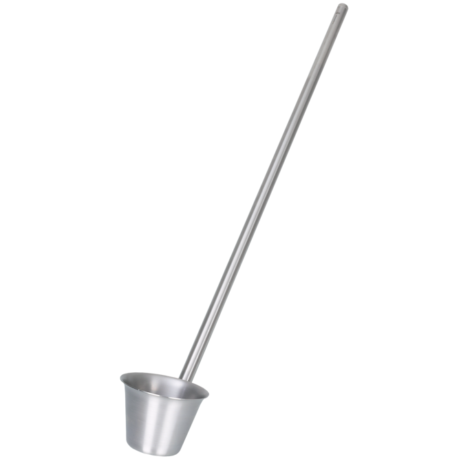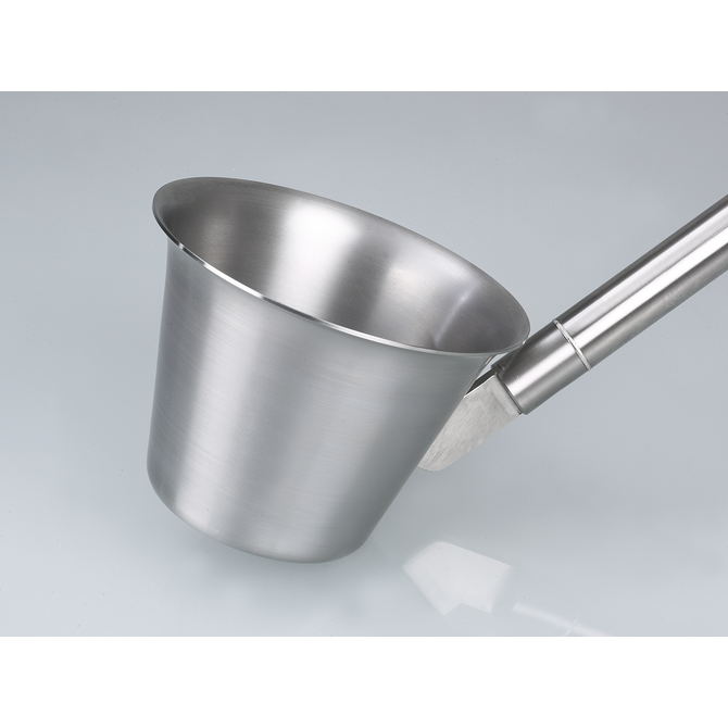 DispoLadle is a sampling scoop specially designed for disposable use. The scaled scoop with embossing can be used for measuring. It shows contents in increments of 10 ml, up to 200 ml. An ergonomic handle and a spout on both sides for right or left-hand operation make handling simple and easy.