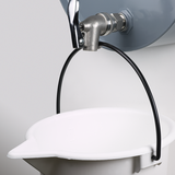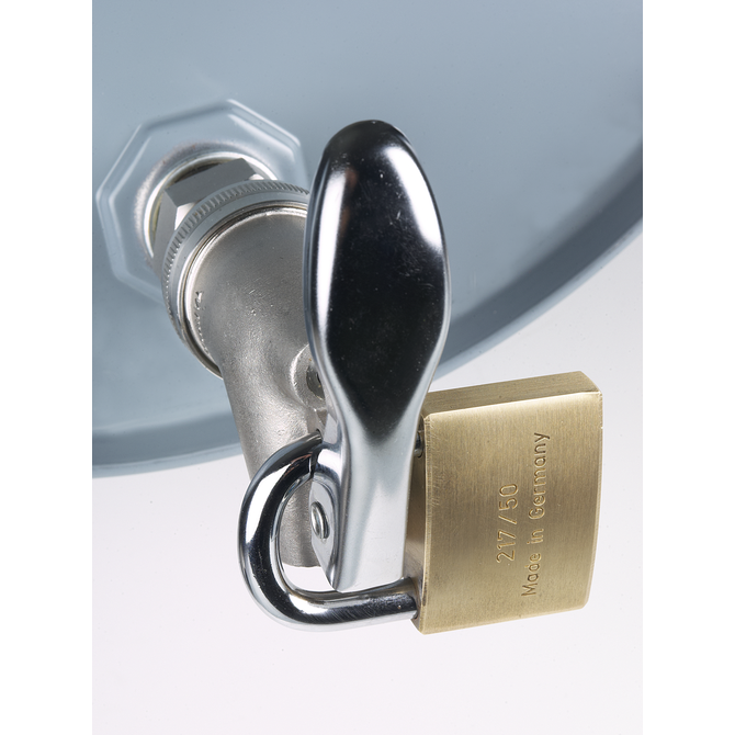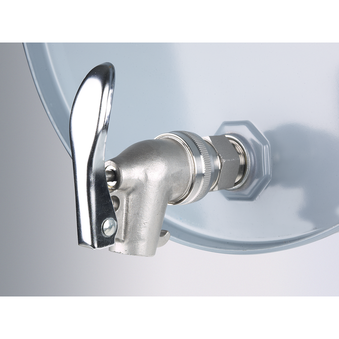 Very sturdy and robust spigot made of stainless steel AISI 304 (1.4301). The outlet of the spigot turns 360° so it can be adjusted to any required position. With a practical suspension device for filling container and eyelet for shutting off the spigot.