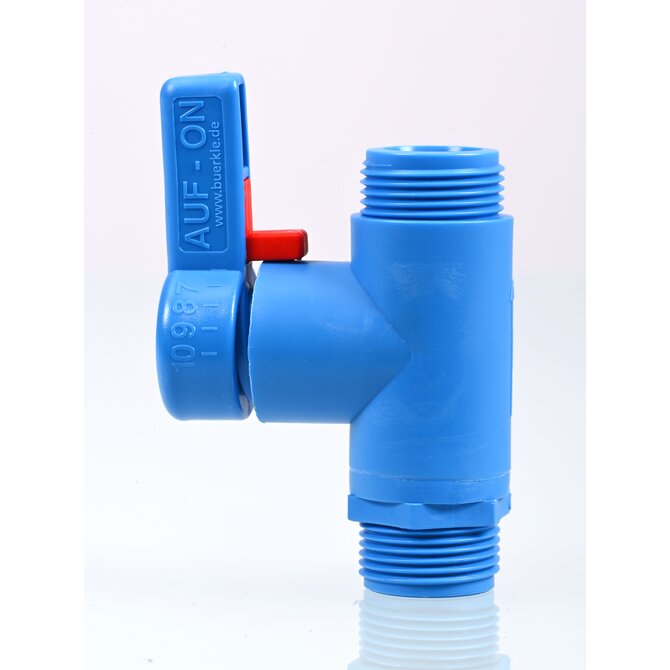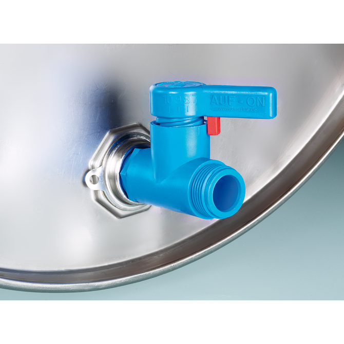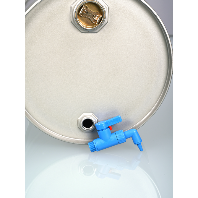 Ball valve PP fits all containers with G 3/4" connection thread. It can be attached to nearly all containers with thread adapters. Robust industrial quality, large flow.