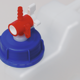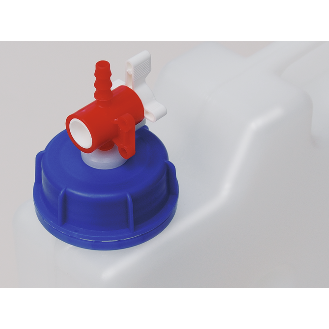 This vented screw cap is a special lid designed for Bürkle space-saving canisters, featuring an integrated venting function. It has a standard thread (S 50 × 4, DIN 50) suitable for the wide opening of flat canisters and ensures that air can flow back into the canister during pouring or filling. This prevents glugging or unwanted pressure build-up in the canister, allowing the liquid to flow evenly and without interruption. The screw cap is equipped with a manually operated vent valve for air pressure equalization. Since venting does not occur automatically, the valve must be opened manually during emptying to allow air to enter and ensure a smooth, consistent flow of the liquid.