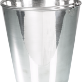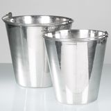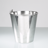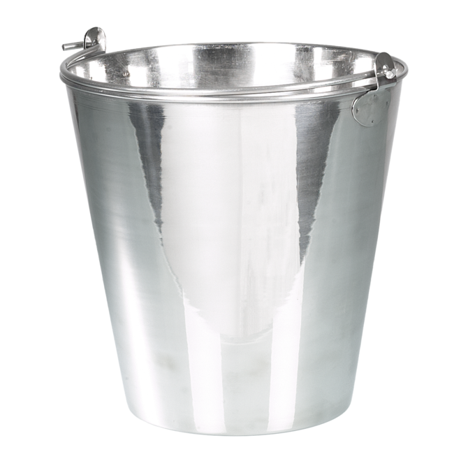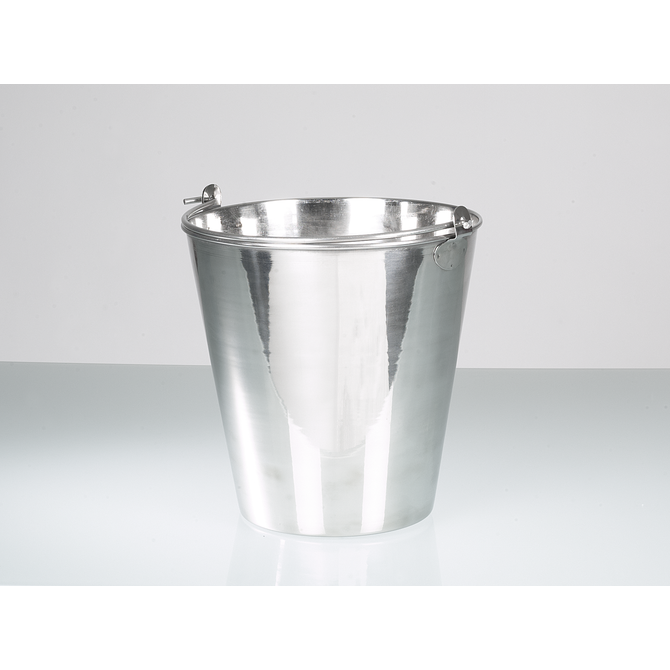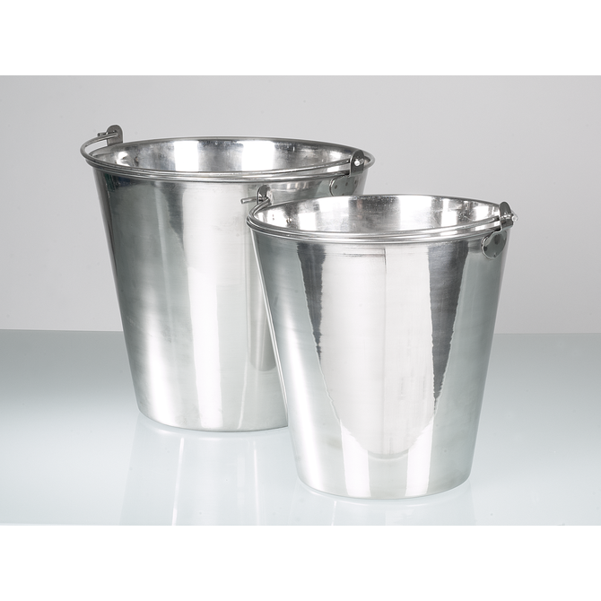 The bucket is made entirely of high-gloss polished stainless steel. The smooth surface of the stainless steel bucket makes it easy to clean. The rounded, movable handle makes it comfortable to move the bucket.