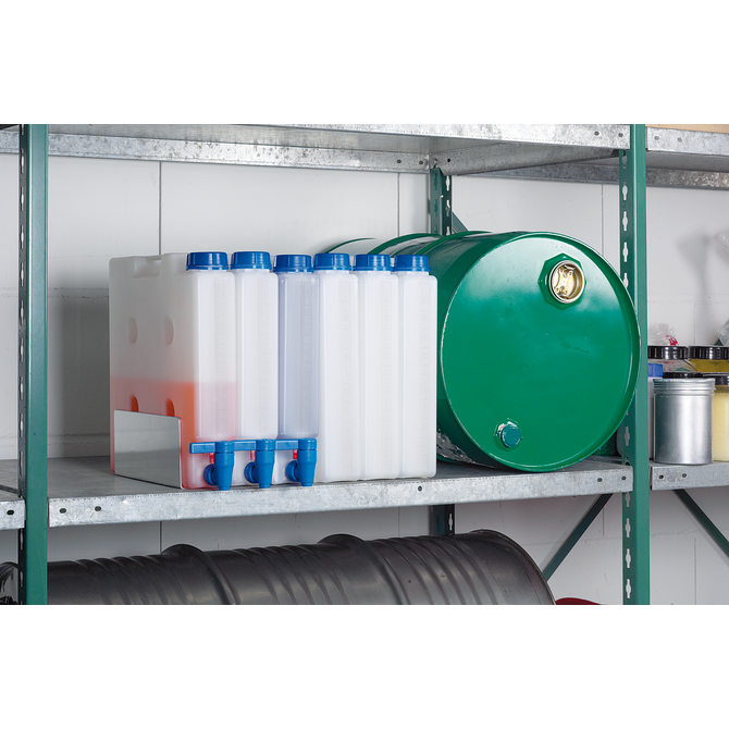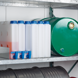 In laboratories, where space is often limited, the space-saving canister enables chemicals to be stored safely. In production environments, liquids can be stored efficiently and filled precisely when required.
