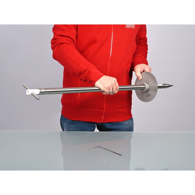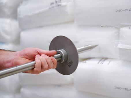 To make a sampling procedure reproducible, it should always be performed under the same conditions. The depth stop for samplers is a useful accessory for this purpose. The depth stop can be clamped to the sampler at any height using a C-clamp screw. This ensures that the sampler penetrates to the same desired depth each time. The penetration depth is fixed and can be accurately recorded, e.g. in a test report or sampling instructions. In addition, the depth stop can prevent accidental puncturing during sampling.