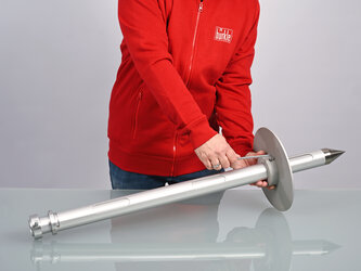 To make a sampling procedure reproducible, it should always be performed under the same conditions. The depth stop for samplers is a useful accessory for this purpose. The depth stop can be clamped to the sampler at any height using a C-clamp screw. This ensures that the sampler penetrates to the same desired depth each time. The penetration depth is fixed and can be accurately recorded, e.g. in a test report or sampling instructions. In addition, the depth stop can prevent accidental puncturing during sampling.