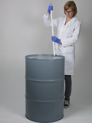 The sample container is available with 50 ml / 1.5 oz., 100 ml / 3.5 oz. or 250 ml / 8.0 oz. content. Depending on the design, container openings can be sampled from a diameter of 52 mm (2.05 in.) (2" barrel opening), 65 mm (2.56 in.) or 85 mm (3.35 in.). This makes DispoDipper ideal for extracting samples from barrels, canisters and other containers.