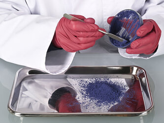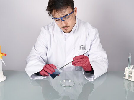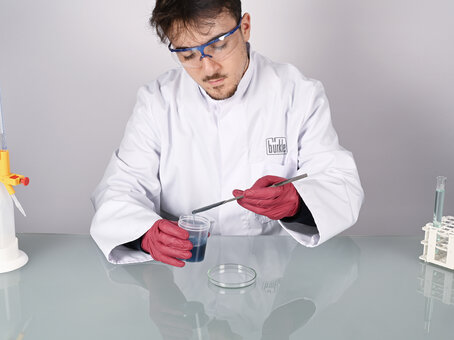 In chemical laboratories and biotechnological facilities, the rounded side of the double spatula is ideal for removing sensitive samples from beakers and reaction vessels without scratching them.