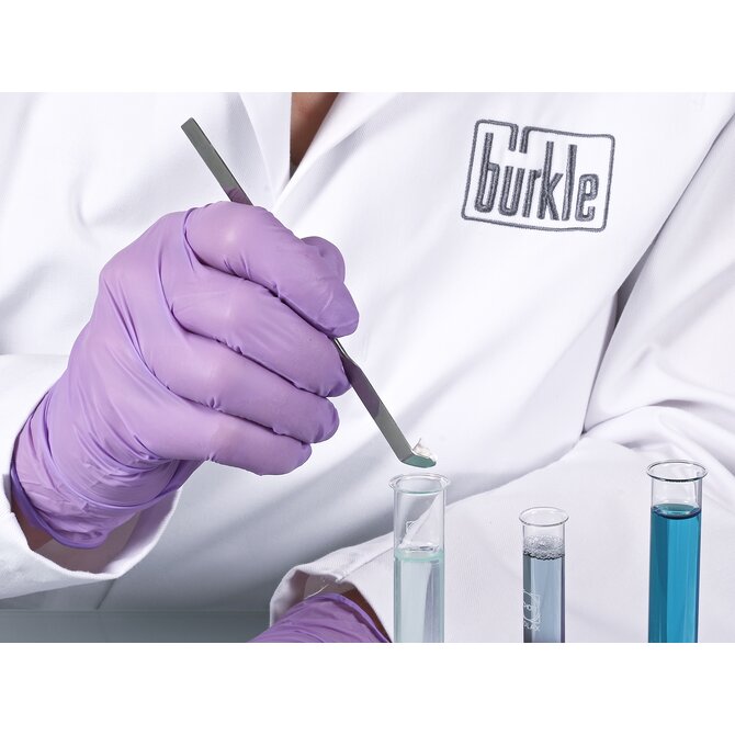 The Chattaway square/round curved double spatula is ideal for tasks requiring precision and ergonomics. In instrumental analysis, for instance, the square side is used to accurately measure fine-grained solids and transfer them to measuring vessels or analysis vials. The curved, round side is used to remove samples from round-bottomed flasks, beakers, and other difficult-to-access vessels during sample preparation. The curvature of the spatula adapts to the shape of the vessel, preventing scratches and reducing material loss. In microbiology or histology, the ergonomic angle makes it easier to scrape residues from Petri dishes or centrifuge tubes without straining your hand. It ensures smooth processes and precise results during repetitive dispensing work. The spatula proves its functionality in a wide range of application scenarios, whether in research, laboratory routine, or medical diagnostics.