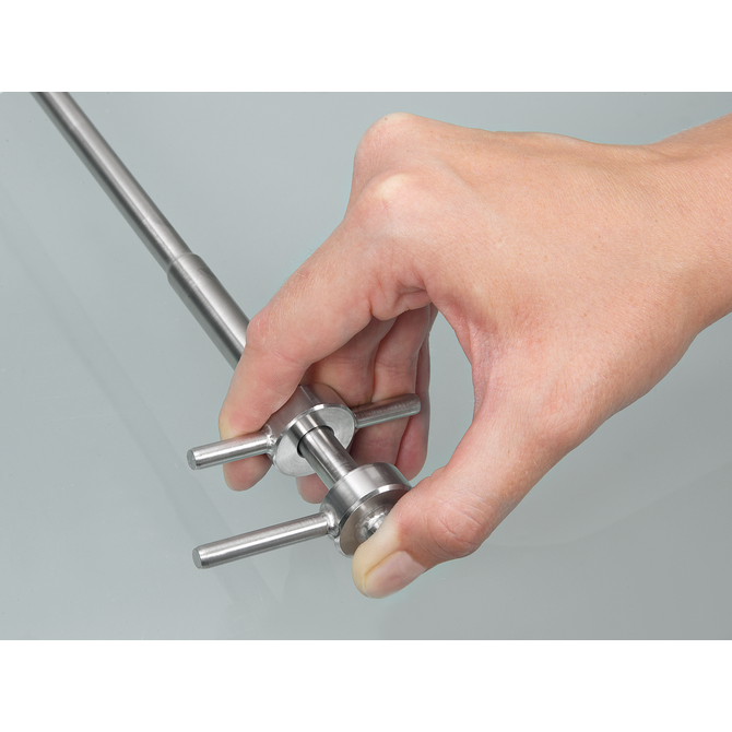 - Turn the lower handle of the EasySampler clockwise, the collector is now closed and can be inserted into the powder/granulate.