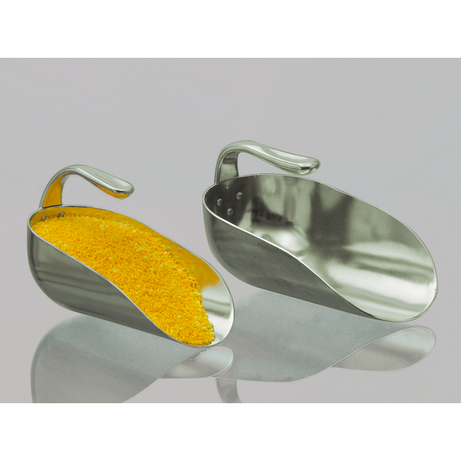 The stainless steel scoop can be used for taking samples of powders, granulates and pastes. Made of stainless steel AISI 304 (1.4301), the material is sterilizable and autoclavable. The rustproof stainless steel scoop has a smooth, high-gloss polished surface and is food-safe.