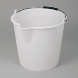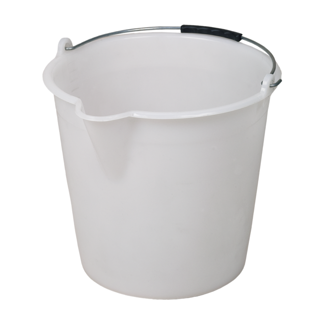 Industrial bucket for transporting, decanting and mixing. Safe emptying with wide spout. Handle made of metal.