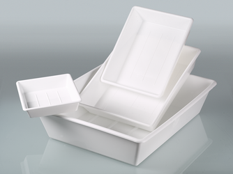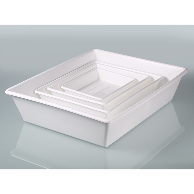 The laboratory trays are practical all-purpose trays that can be nested when empty, also durable, shatterproof and resist flexing. The trays have a strong, rounded rim.