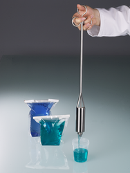 Easy use with one-handed operation. With discharge funnel for safe filling of the sample bottles.