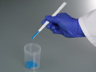 The spatula with transparent sealing sleeve can be closed again immediately after sampling and the exclusion of contamination can be safeguarded for the sample taken.
