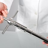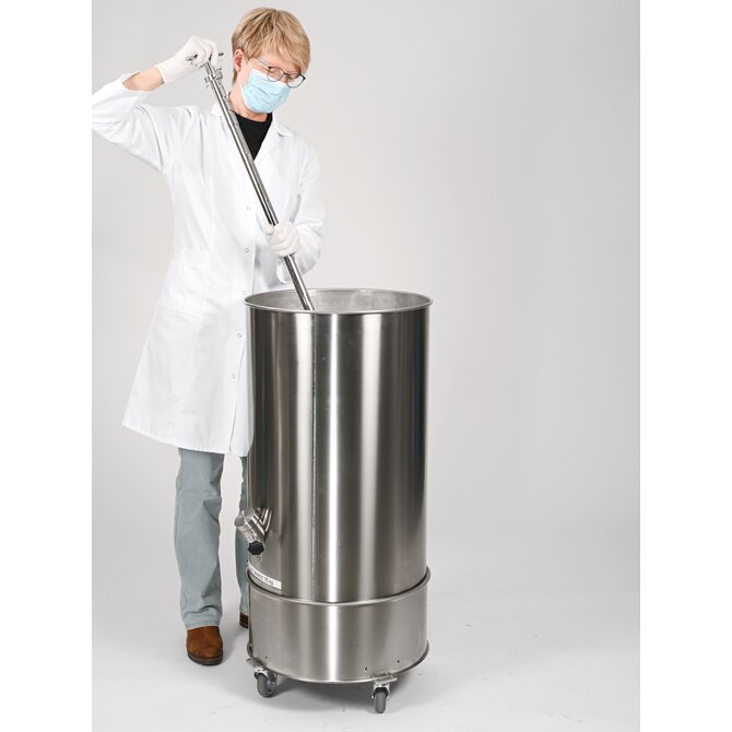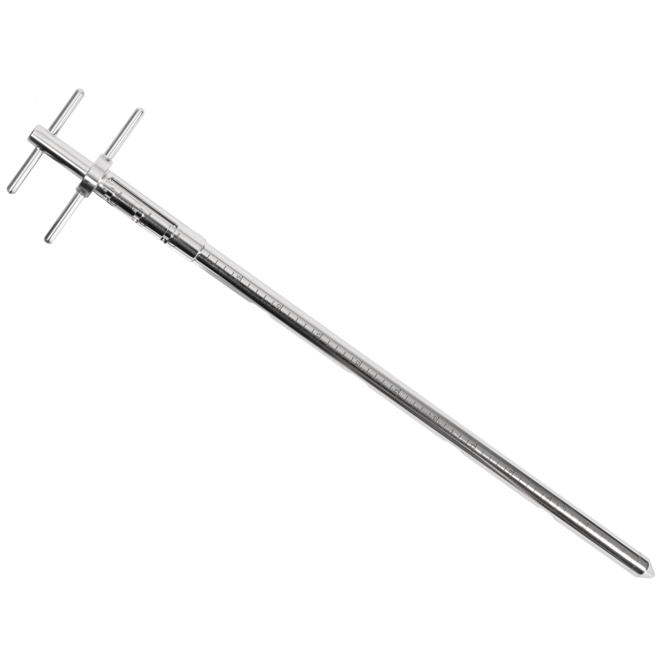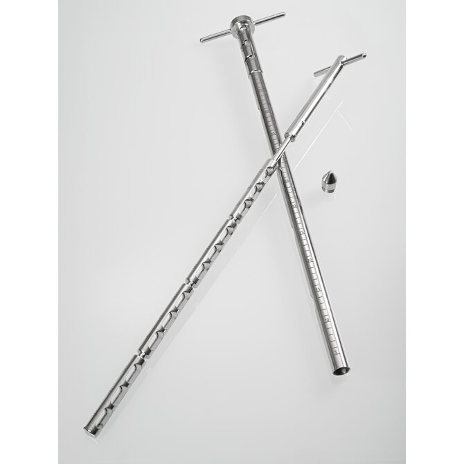 The immersion depth of the sample lance is easy to read thanks to a laser-engraved depth scale. The rounded tip prevents scratching of the container. Two additional handles ensure safe insertion, fixation and rotation in the material. Tight-fitting inserts prevent material mixing and allow easy disassembly for thorough cleaning.