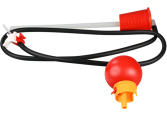 The OTAL® foot pump with hose and stopcock is flexible and space-saving. The 1.5 m (4.92 ft.) long adaptable PVC hose allows flexible positioning of the filling container. The stopcock made of PP/PE enables precise dosing and prevents overflow.