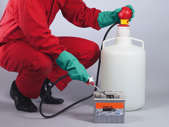 Designed for use with automotive batteries, the OTAL® battery pump provides the flexibility and control needed to dispense acid safely and efficiently. It is a practical and reliable solution for garages and similar facilities. In addition, the pump is useful in many other industries where acid needs to be dispensed into narrow openings.