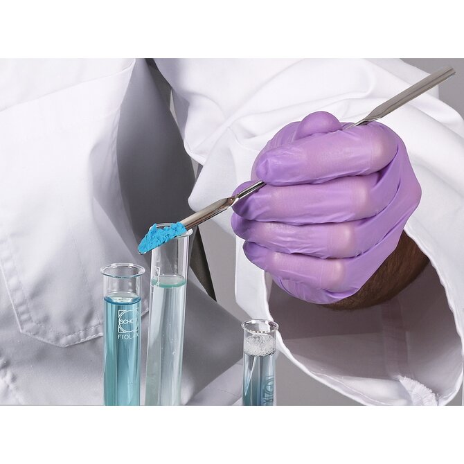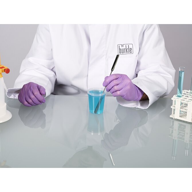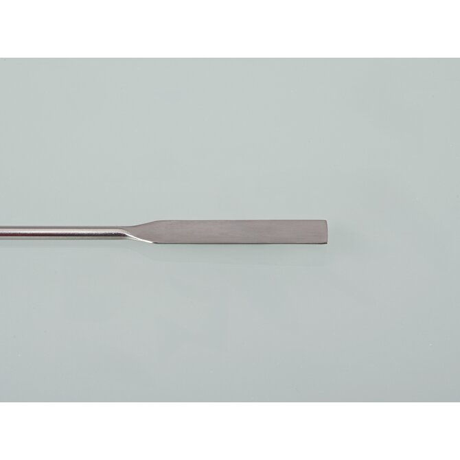 The micro spatula can be used for reliably measuring, sampling or processing small amounts of powder, chemicals, pastes, creams or active ingredients. The laboratory scoop is made of stainless steel and is manufactured entirely without edges, crevices or undercuts. This excludes the possibility of impurities or cross-contamination, since no product residue or cleaning agents can be deposited.