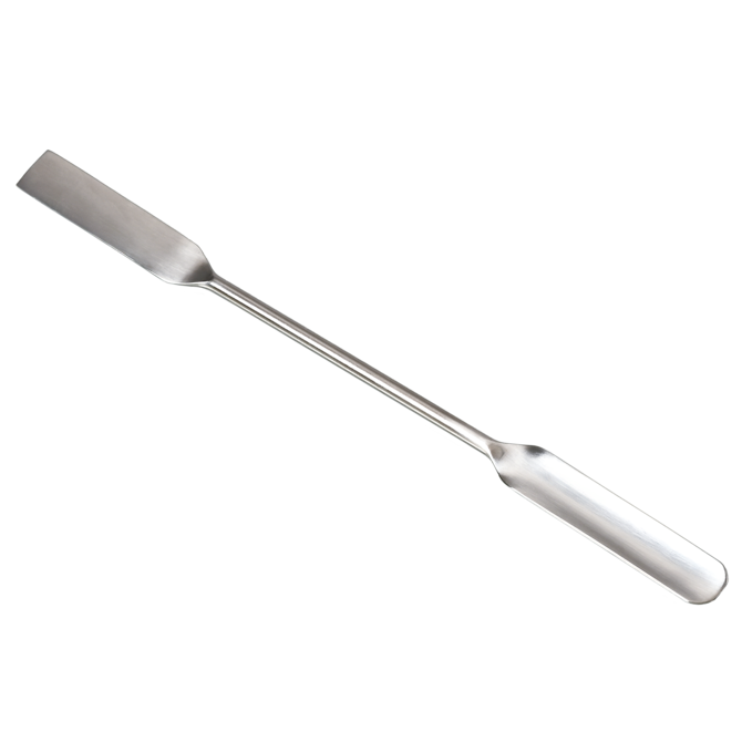 - Powder spatula, square/semi-cup-shaped, made of stainless steel