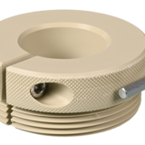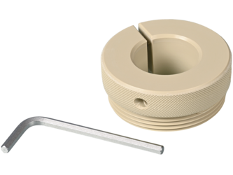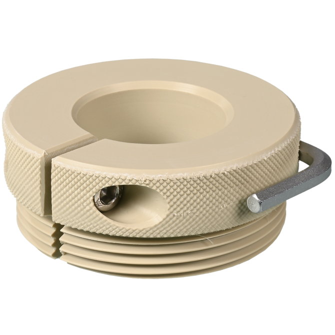 Universal thread adapter for nearly all drums and other containers with opening of 48–75 mm in diameter, regardless of the respective thread. The thread adapter can be mounted quickly and easily with clamping screws and can be used for different container openings.