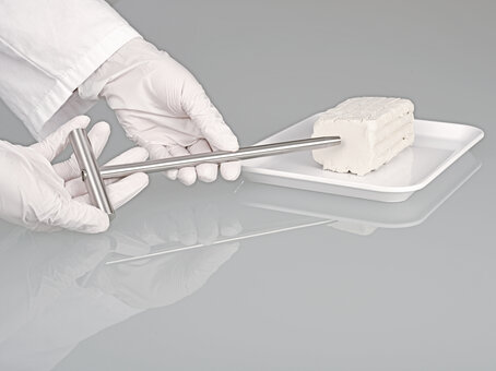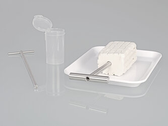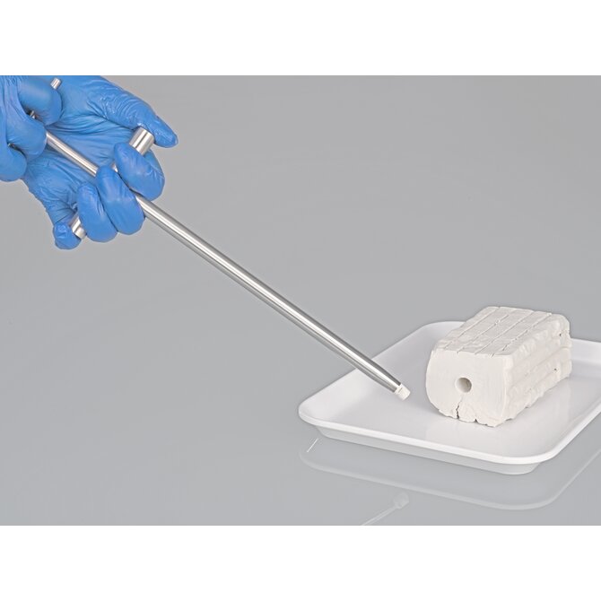 Cylindrical hollow drill with a sharp cutting edge, can easily be driven into paste-like and semi-solid substances. The samples cut out are subsequently removed with the appropriate push-rod ejector. Total length 260 mm (10.24 in.). Inner Ø 8 mm (0.31 in.), outer Ø 10 mm (0.39 in.).