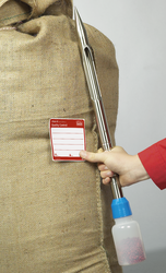 The collector is inserted into bags or casks and the sample is removed using a semi-circular profile lance.