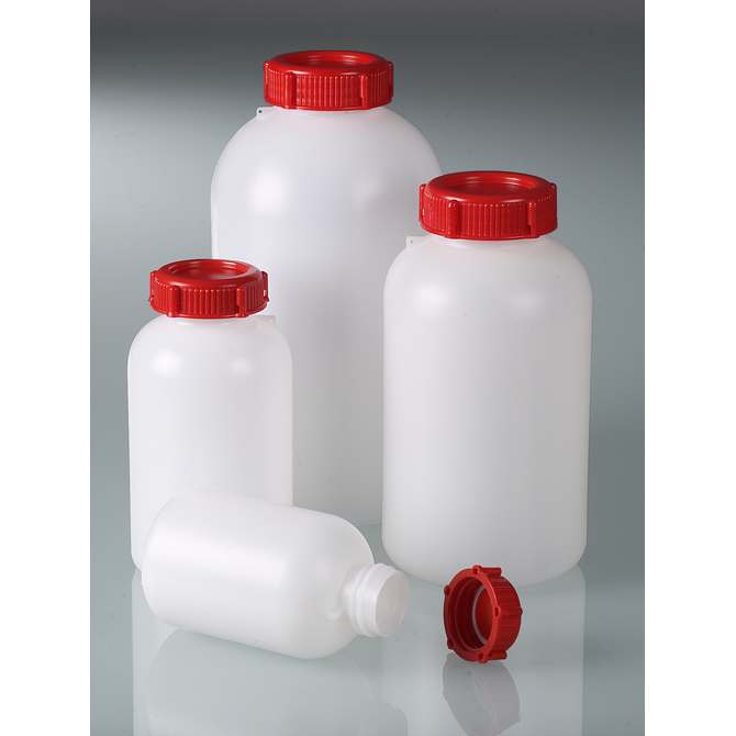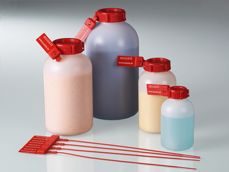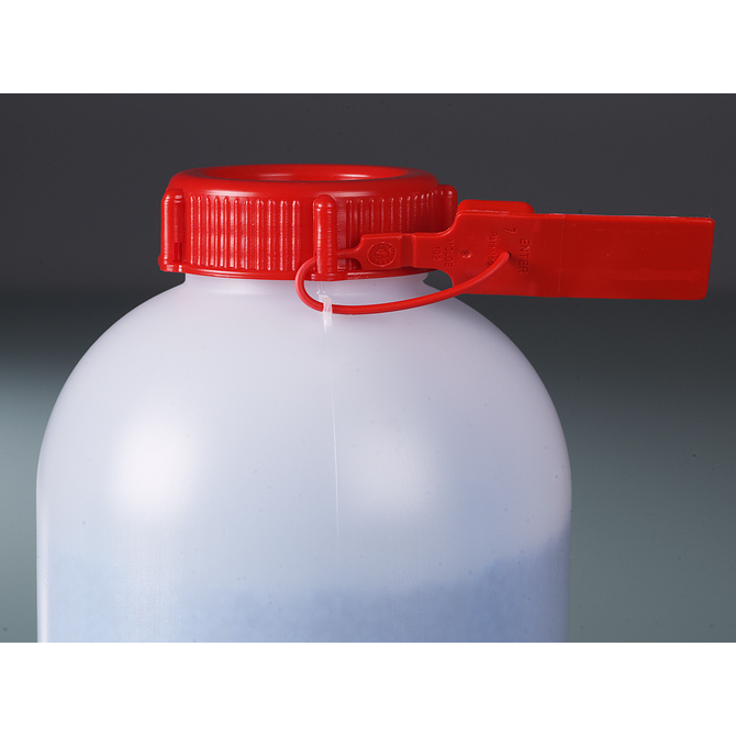 The sealable wide-neck bottle protects against unauthorized access or tampering. Sealing eyelets on the cap and bottle can be used to ensure that the bottle has not been opened or the contents tampered with after sealing. This makes the bottle the ideal solution for secure shipping or storage of samples, hazardous materials or high value contents.