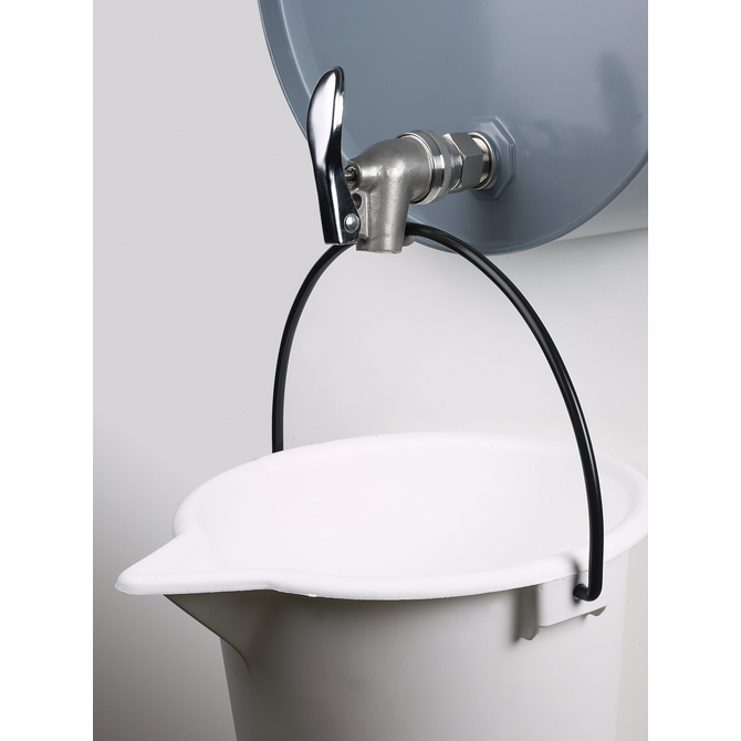 Very sturdy and robust spigot made of stainless steel AISI 304 (1.4301). The outlet of the spigot turns 360° so it can be adjusted to any required position. With a practical suspension device for filling container and eyelet for shutting off the spigot.