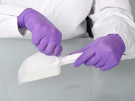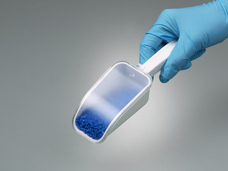 The LaboPlast® disposable scoop made of high-quality, white polystyrene is manufactured, assembled and individually packaged under class 7 (ISO) cleanroom conditions to meet the highest cleanliness requirements.
