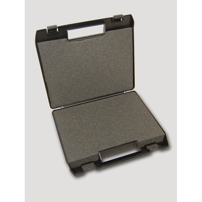 The handy transport case is a plastic case with a foam insert. It features a sturdy carrying handle, snap closures, and pick-and-pluck foam inside. Thanks to its hard outer shell, sensitive devices are protected from impacts during shipping or when carried in the field.