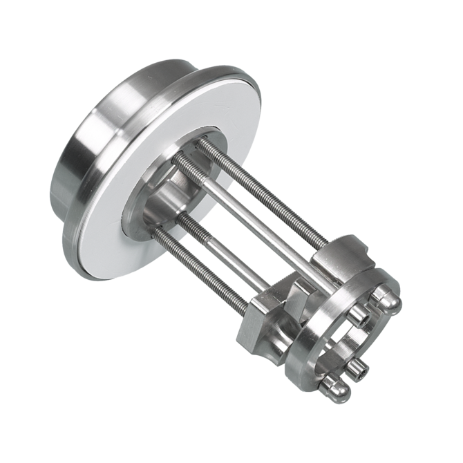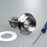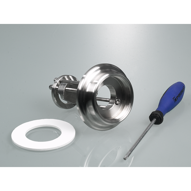 Also for wide-necked screw caps. The screw joint 2" is screwed on from the inside using lock nut 2". (Mounting holes in the container 60 mm).