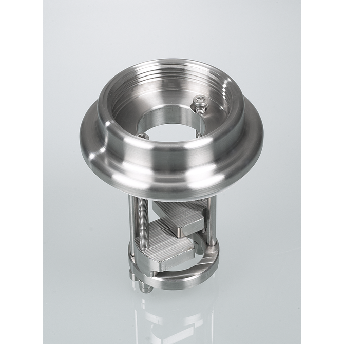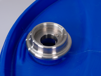 Universal thread adapter for nearly all drums and other containers with opening of 48–75 mm in diameter, regardless of the respective thread. The thread adapter can be mounted quickly and easily with clamping screws and can be used for different container openings.