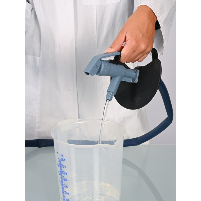 - Manguera de descarga de 1,5 m con válvula integrada: diseñada especialmente para la PumpMaster para líquidos petroquímicos