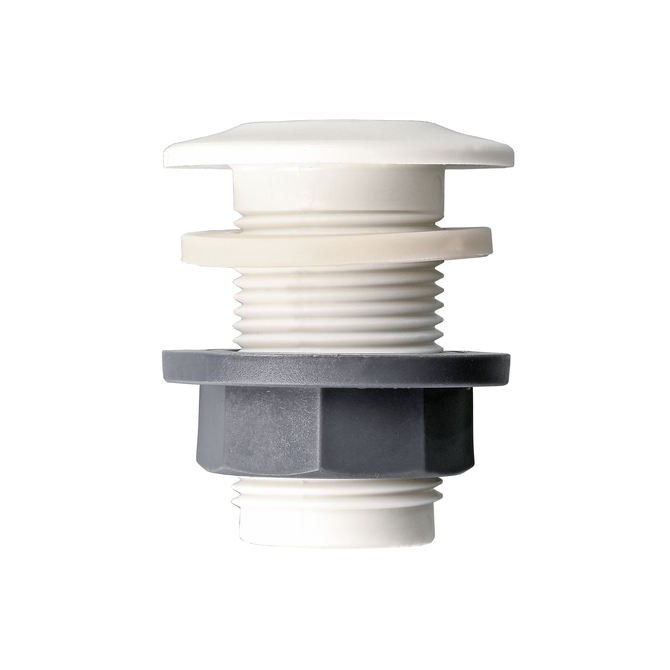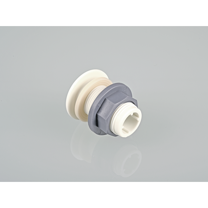 Raccordo per contenitori con filettatura esterna, completo di guarnizioni in EPDM, per un facile montaggio della filettatura nei lati dei contenitori.