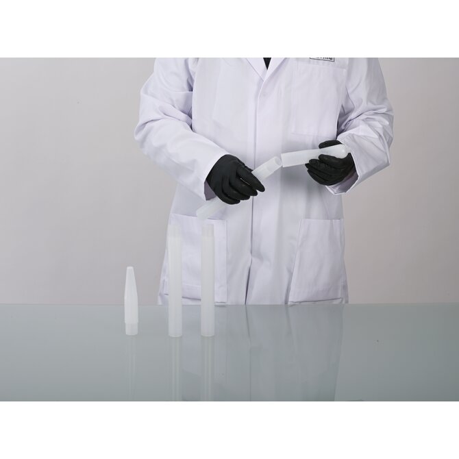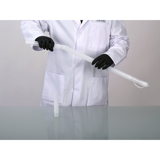I campioni vengono prelevati direttamente nella bottiglia di campionamento originale avvitata. La chiusura a prova di manomissione di questi flaconi con l'anello di sicurezza originale garantisce il trasporto del campione in modo inalterato. I campioni possono essere prelevati fino a 200 cm di profondità, ad esempio da serbatoi, silos o cisterne, utilizzando l'asta di prolunga.