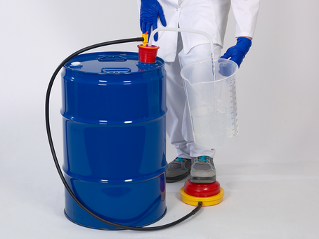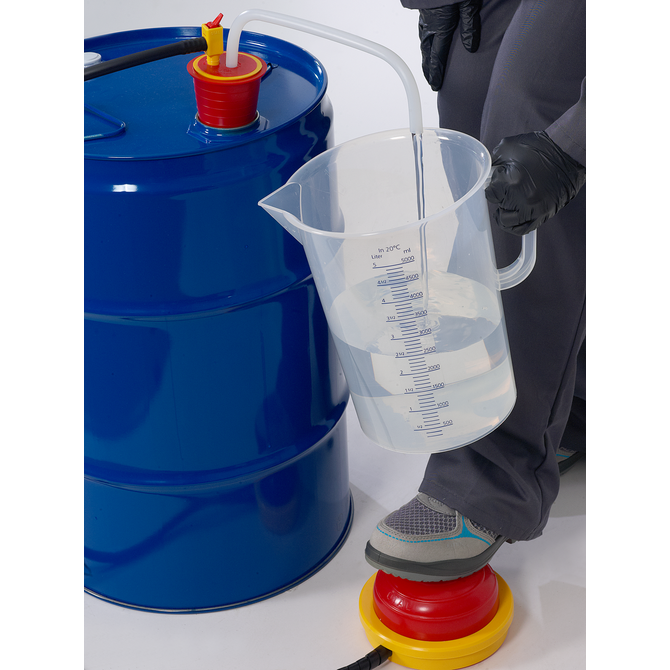 La pompa a pedale monouso è adatta per il riempimento di liquidi a bassa viscosità fino a 500 mPas, ad esempio acidi, alcali, detergenti e liquidi del settore alimentare. La pompa è ideale per contenitori ermetici fino a circa 220 litri.