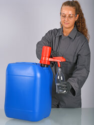 Il Pump-it® è ideale per il prelievo regolare di piccole quantità di liquido da taniche e contenitori simili fino a circa 60 litri. Il riempimento e lo svuotamento sicuro di taniche, damigiane e piccoli fusti è facile e veloce.