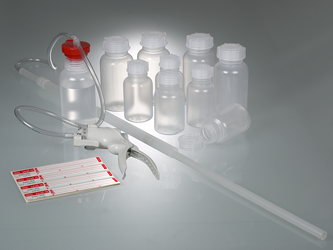 - Incl. 5 bottiglie per campioni in PP da 250 ml e 500 ml ciascuna, pompa per vuoto, adattatore universale per bottiglie, 20 sigilli per etichette seal-it