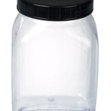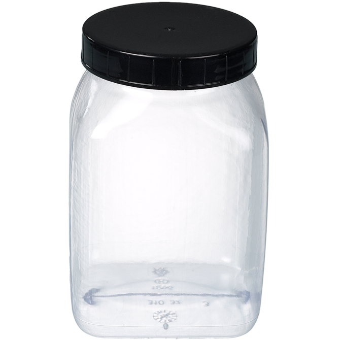 - Barattolo a bocca larga, quadrato, PVC e tappo a vite nero con inserto in schiuma