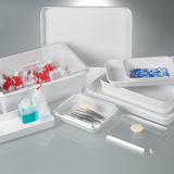 ラボラトリートレイは実用的な万能トレイで、空の状態では入れ子にすることができ、耐久性、飛散防止性、耐屈曲性にも優れています。トレーの縁は丈夫で丸みを帯びています。