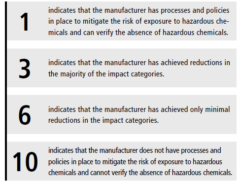 ACTラベルのスコアは、環境負荷が最も低いことを示す1から、環境負荷が最も高いことを示す10まである。機器の場合、エネルギーと水の消費量の値は実際の1日の消費量を表し、10の値を超えることがあります。