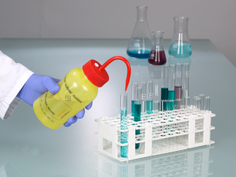 ベントバルブ付き安全洗浄ボトルは、毎日の実験室での作業をより簡単に、そして何よりも安全にします。