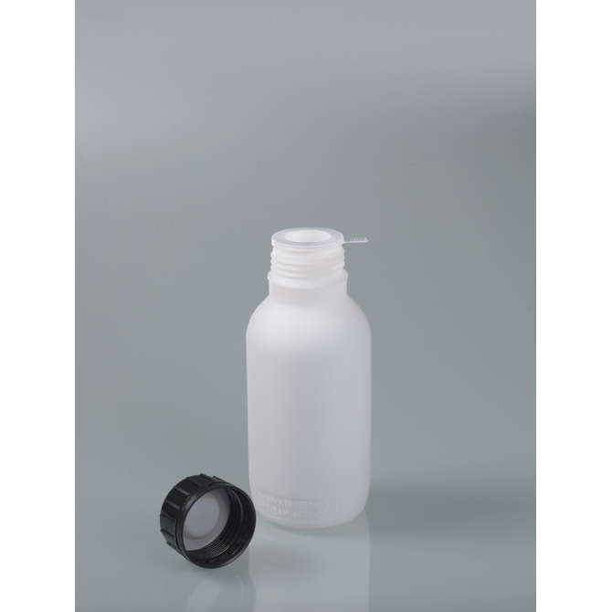 ナローネックボトルは、完全な漏れ防止と気密性を備えています。透明HDPE製で、PTFEライナー付きタンパーエビデントHDPEキャップ付きです。