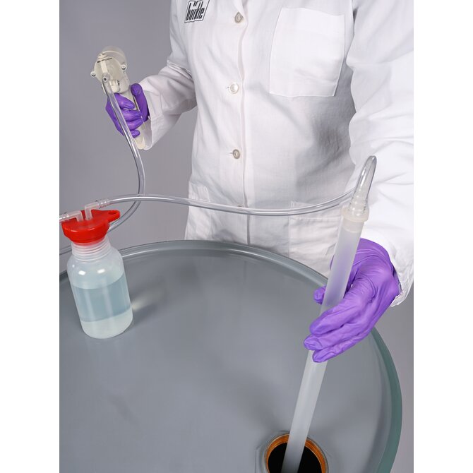 ランス付きビュルクルUniSamplerは、研究室や産業環境における液体の正確で安全かつ柔軟なサンプリングに理想的なソリューションです。最高水準の純度と使いやすさを目指して開発されました。無段階に調整可能な伸縮式ランスにより、クロスコンタミネーションのリスクなしに、決められた深さから迅速かつ効率的に液体を採取することができます。現場でも研究室でも、手で操作できる真空ポンプにより、主電源に依存せずに使用でき、付属のアクセサリーにより、すぐに使用できます。サンプルは吸引ホースと元のサンプルボトルのみに接触するため、信頼性の高い分析結果が保証されます。