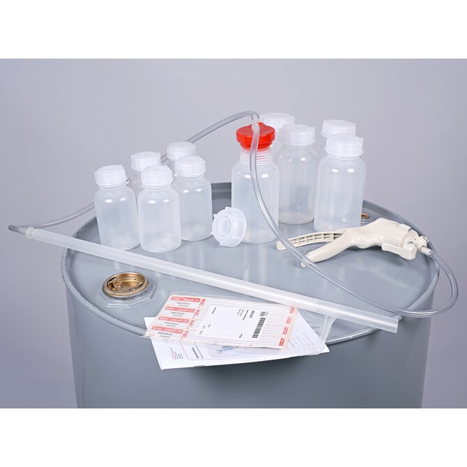 - すぐに使用可能サンプルボトルと安全な文書化のためのラベルシールを含む