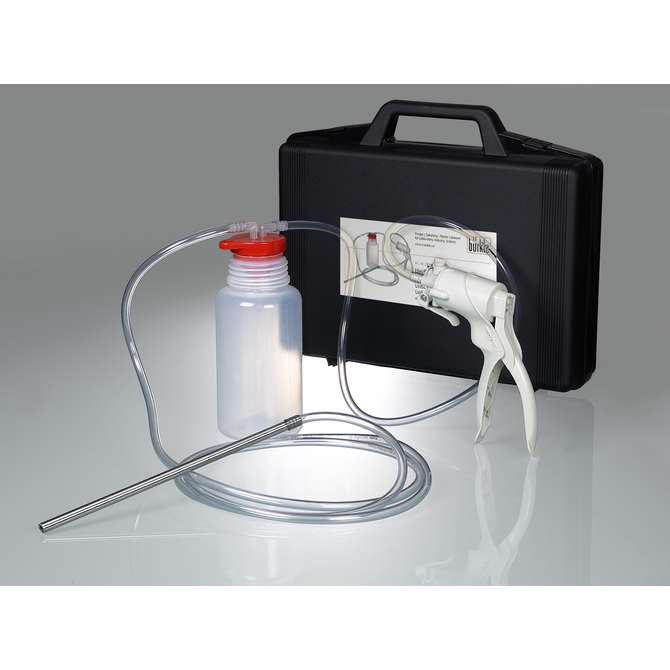 - Complete in a handy transport case incl. sample bottle PP 1000 ml, vacuum pump, universal bottle adapter, hose weight made of AISI 304 (1.4301), 20 seal-it bottle seals
